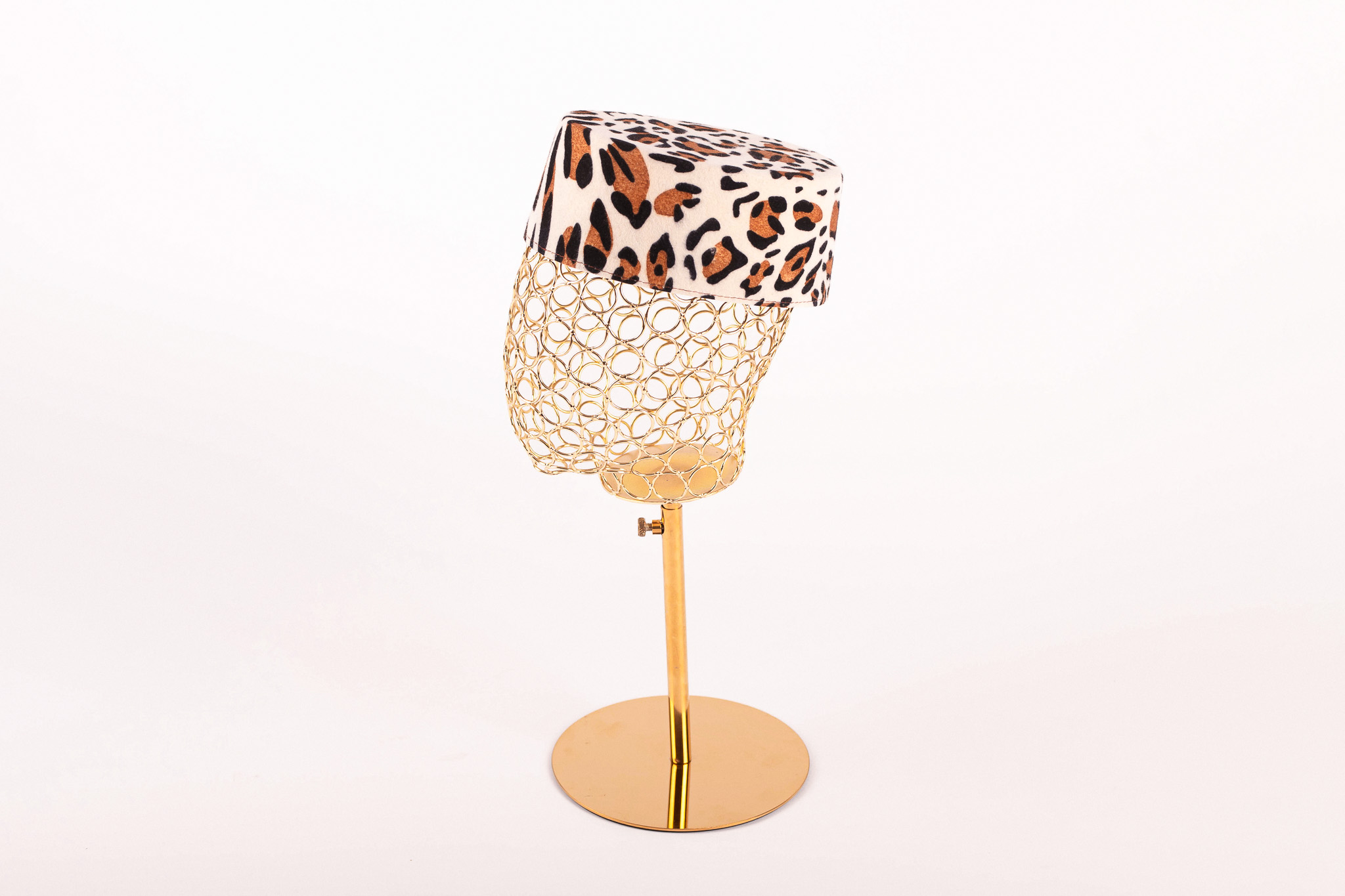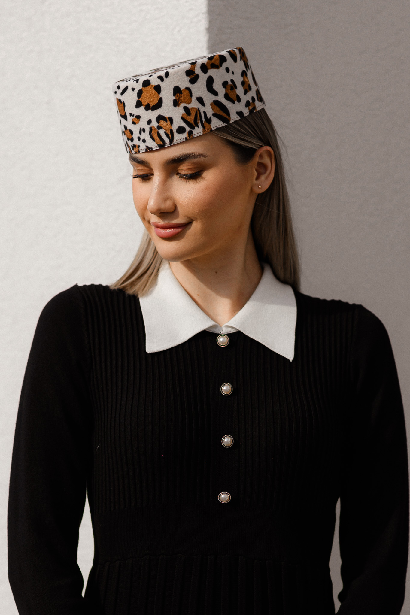 Toca de dama | 100% lana | Fara bor | Inaltime calota de 10.5 cm | Culoare Leopard Wild Elegance alb, maro, negru| Palariile facute la comanda in marimi foarte mici sau foarte mari, nu beneficiaza de retur: 53, 58
